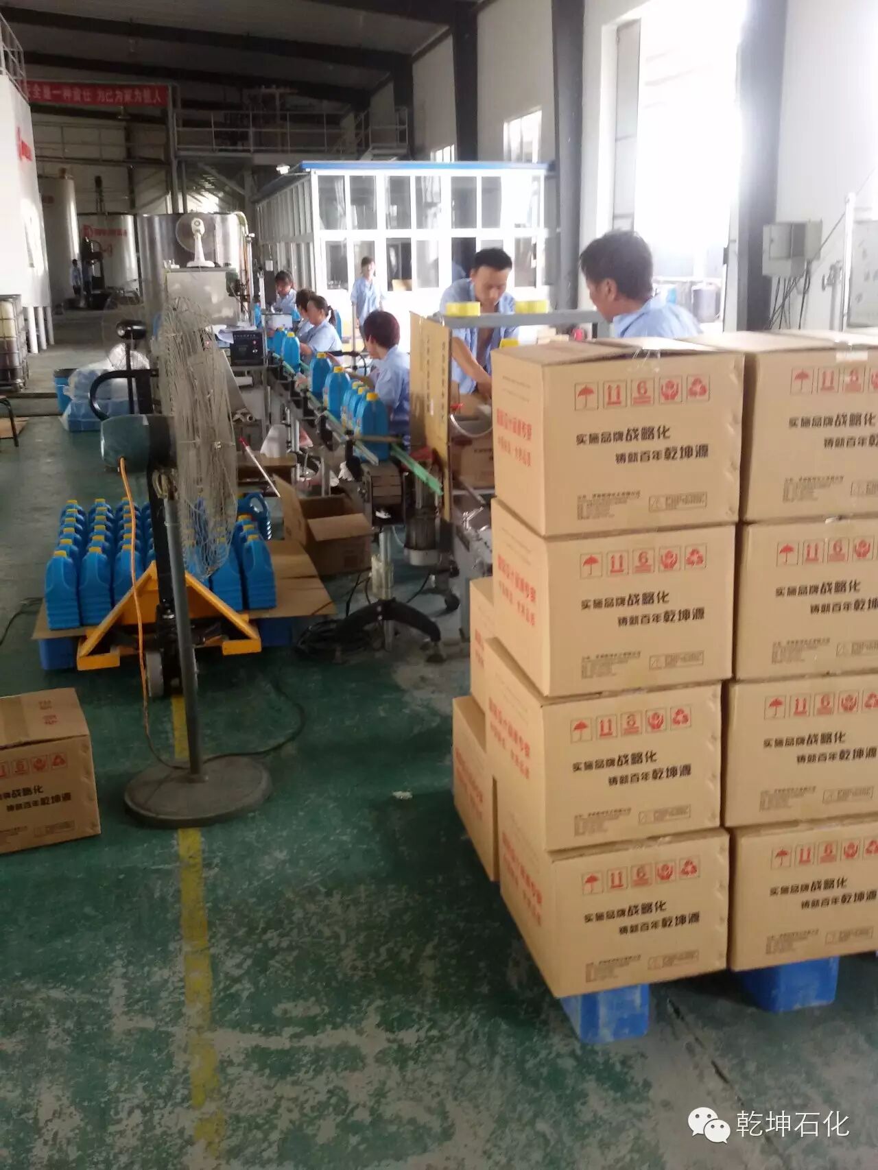 2015年12月5日下午,乾坤公司热烈欢迎和隆重接待了乾坤润滑油江苏地区和内蒙古经销商。江苏公羊商贸有限公司张总带队的3人、内蒙古淡总共同访问了丁庄工业园,他们在崭新的生产线和先进的生产设备前驻足,询问了解生产工艺,并仔细观察自己感兴趣的生产细节。虽然大家都是长时间和润滑油打交道,但是现在亲眼看到润滑油是如何生产出来,还是非常的好奇和兴奋。